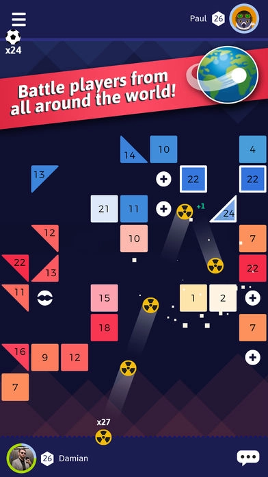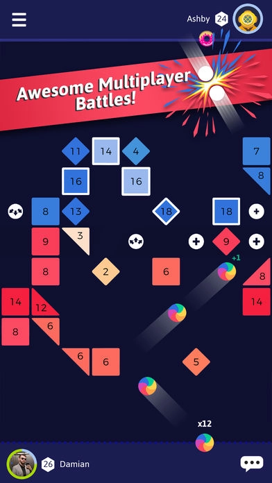 《打方块战争》是一款经典休闲游戏。在游戏里,玩家能够重温打方块玩法,凭借各类反弹物理知识,精心规划精准的射击方向,以最快速度获取最高分数。此外,该游戏还支持联机对战,玩家可在此模式下比拼分数高低。
