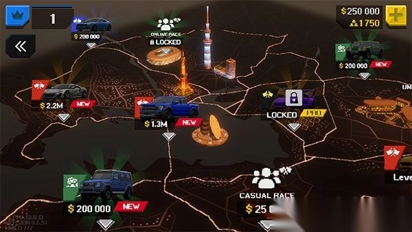 2、参加不同模式赛车比赛,赚取金币,轻松获得高级赛车。
