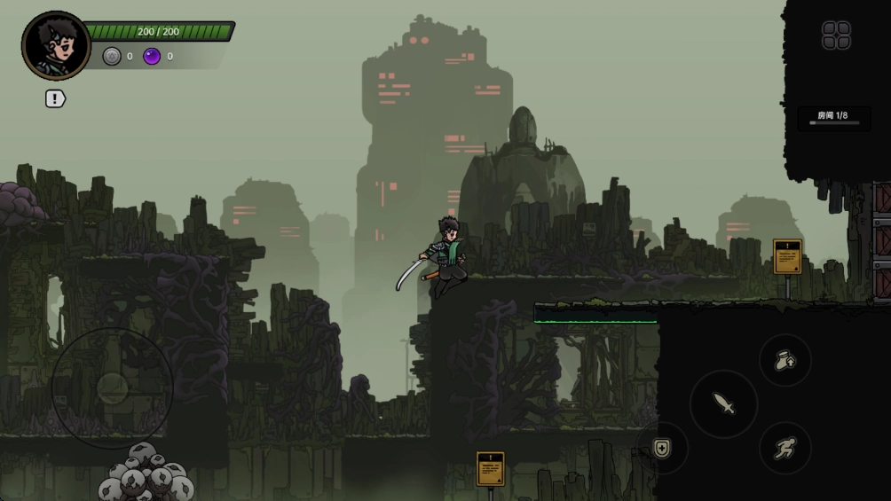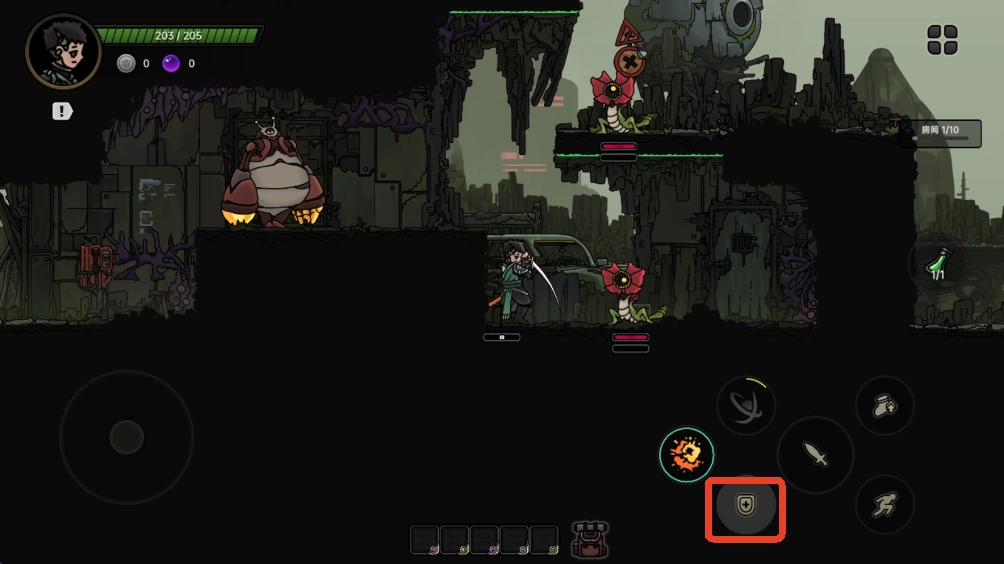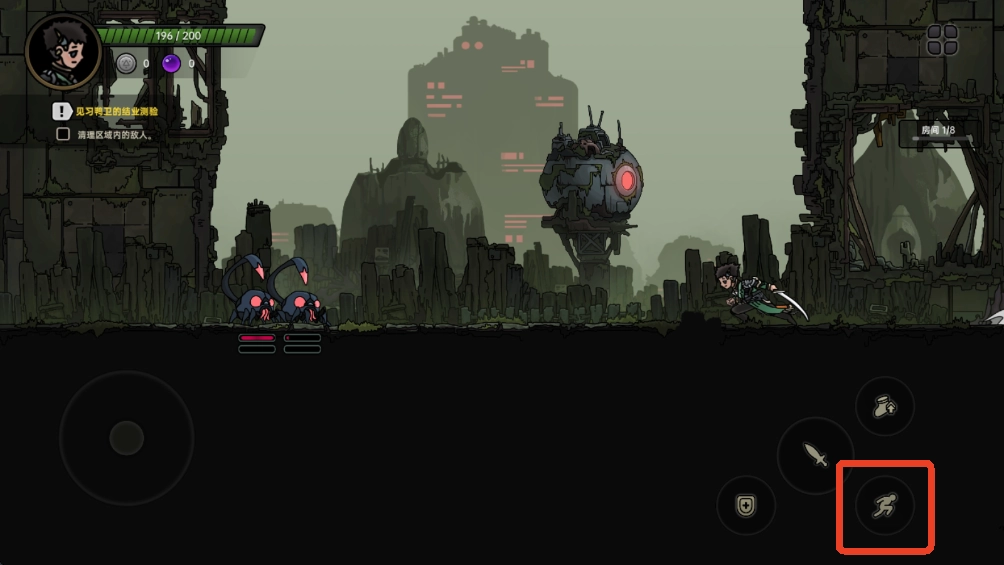 1. 游戏设有多个动作按钮,点击“跳跃”键,就能跳上平台。