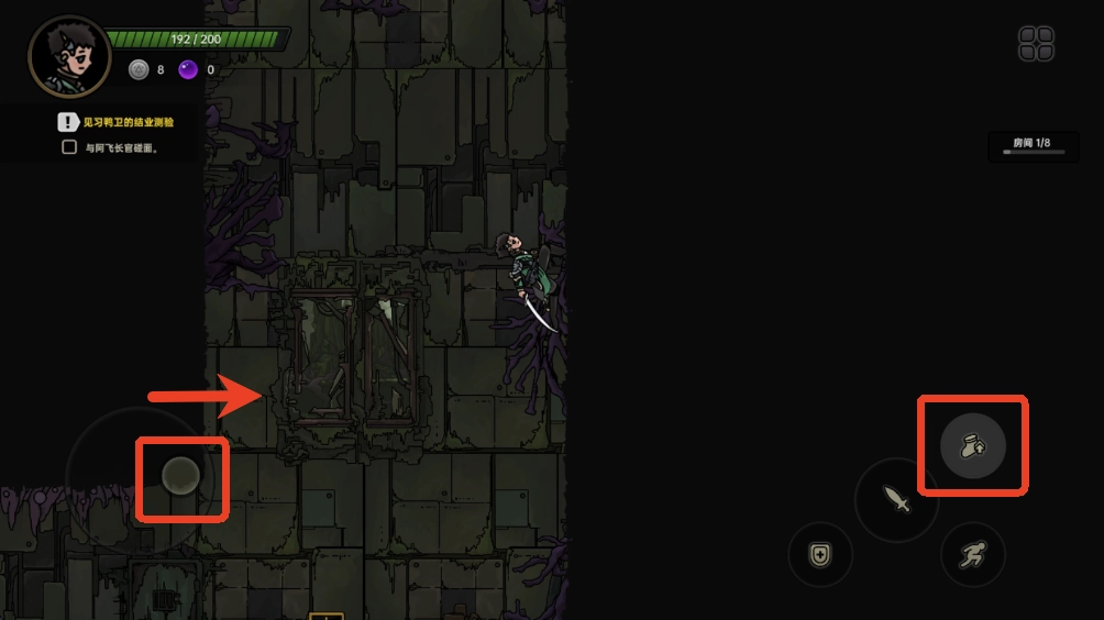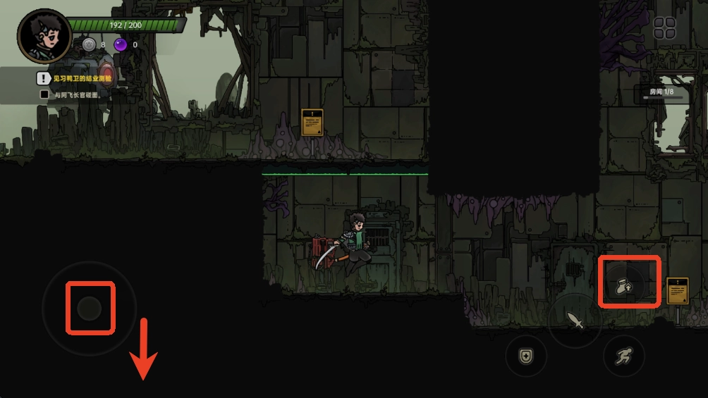 6、同时按下向下方向键与跳跃键,即可从平台跳下。