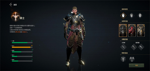 3、随后选择一个职业,当下有骑士、游侠、法师这三大职业可作挑选。