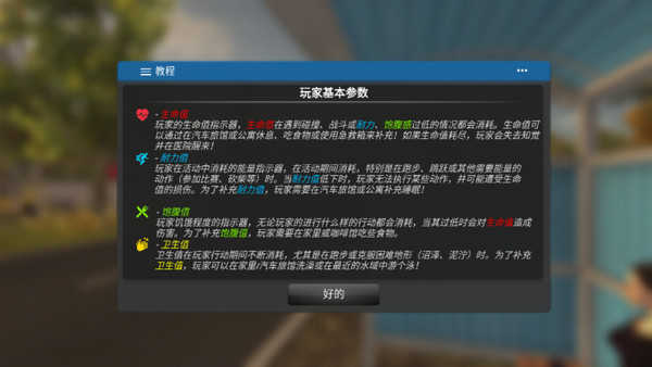 1、完成 60 多个不同角色的故事任务,玩家将在游戏世界中遇到,现在玩家可以体验饥饿、疲劳、需要食物、住宅、医院、警察局等。