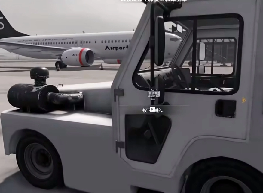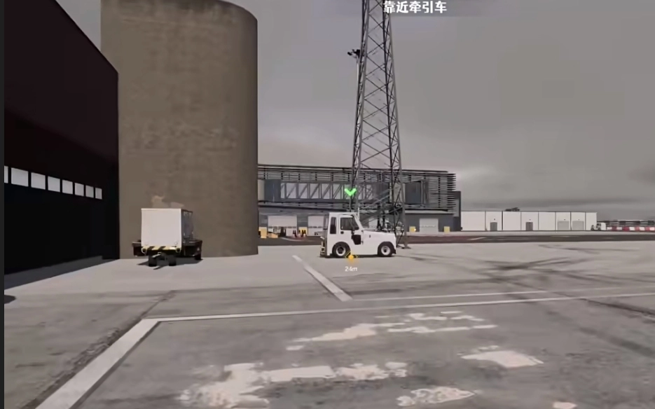 点击v键切换视角,把地面电源机挂到牵引车上,接着按照教程一步步完成自己的工作就可以了。