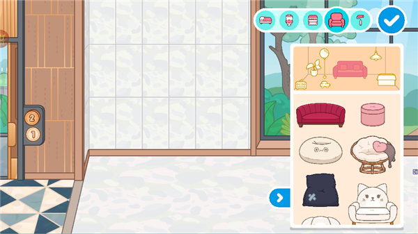 像沙发、床、洗浴设施、沙发之类的各类家居,用户能够自行挑选自己心仪的家具,然后把它们摆放在自己想放的位置就可以了。