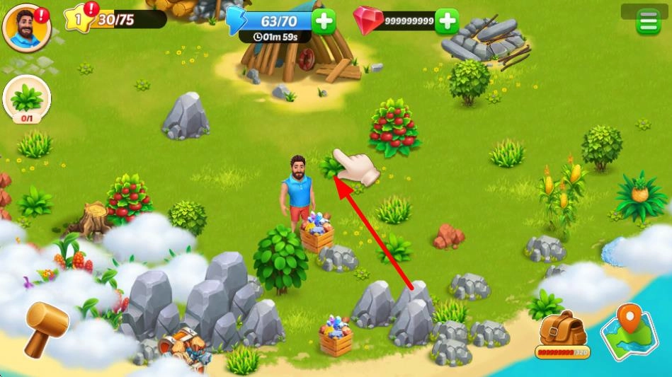 在模拟经营类游戏里,点击植物就能执行收获动作,这是获取资源、推动游戏进程的基本环节,界面里的岛屿场景也满是活力。
