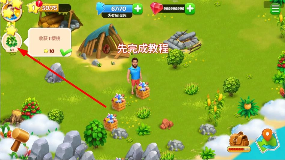 在收获樱桃之后完成对应的教程任务,就能获取星星奖励。这些教程任务能够帮助玩家熟悉游戏的各项操作和核心机制,而获得的星星则可用于解锁新功能或者提升建筑等级。