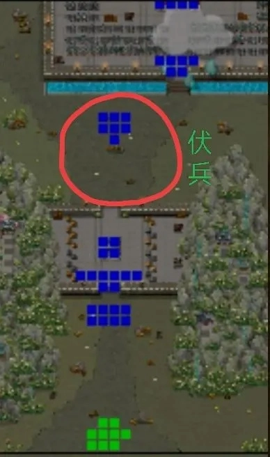 ①分兵两路,先攻取上下两座山。这时候右边我方军队不可进入,也就是那两个守门步兵所在的位置前方,无论谁过去都会直接撤退。