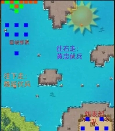 ①开局时孙坚移动到第一个高亮点,此时会出现两名海盗。将这两名敌军击败后,继续前往第二个高亮点。进入第二个高亮点区域后,守门的两个敌军会进入麻痹状态,建议尽快将他们消灭。
