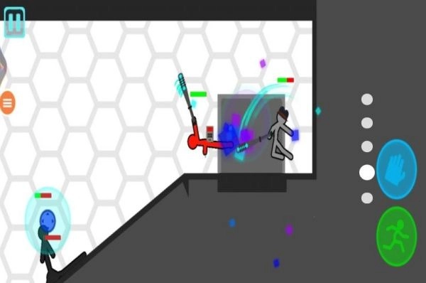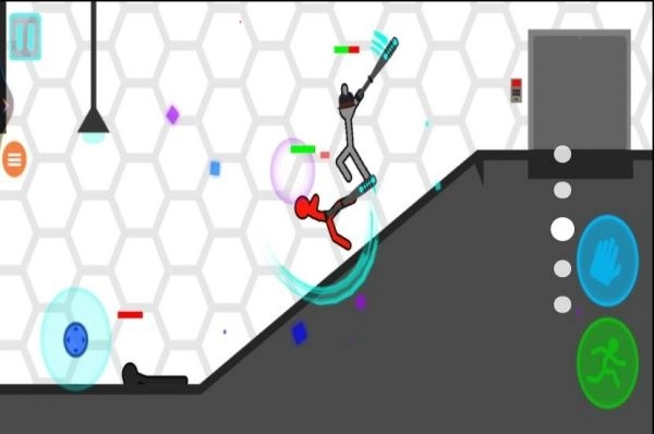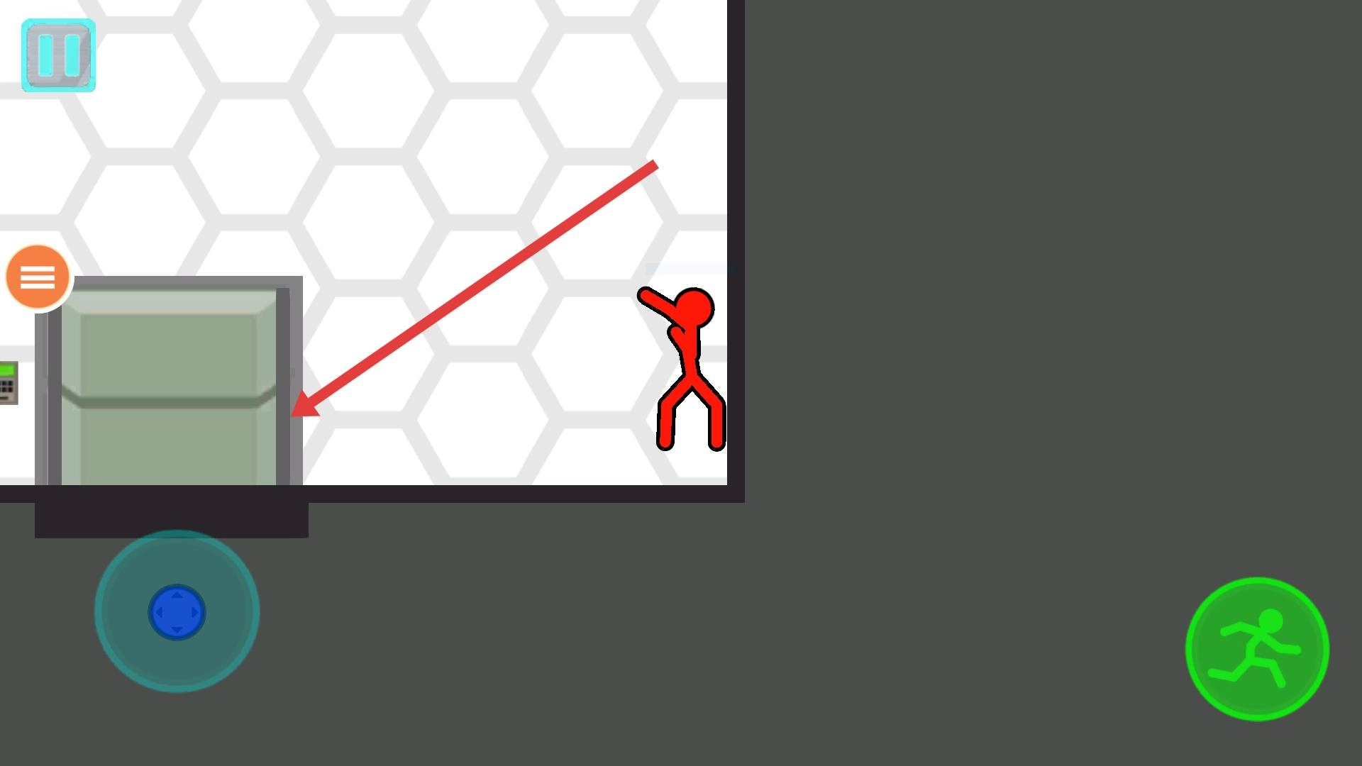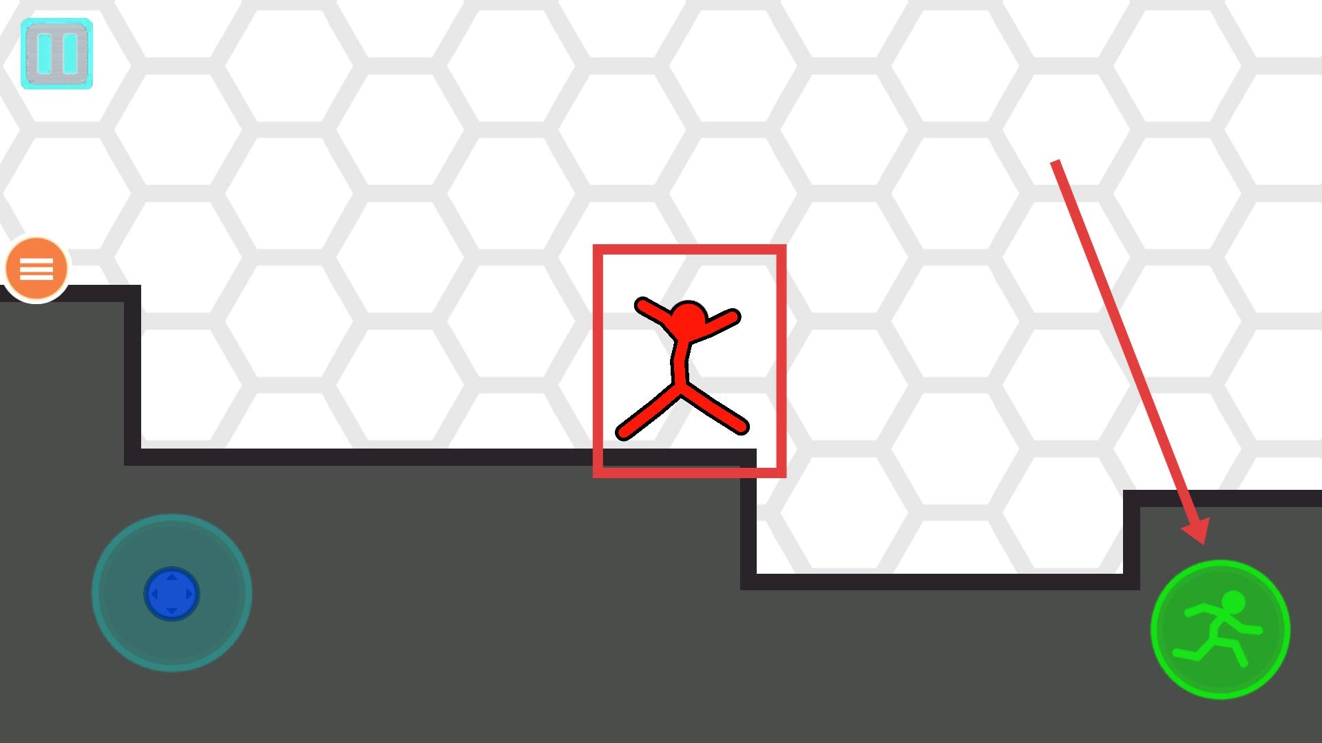 操控火柴人前进时遇到台阶,此时再次点击绿色的奔跑按钮,火柴人就能跳跃上台阶,之后继续朝着目标方向移动,过程中要留意观察前方的路径状况。
