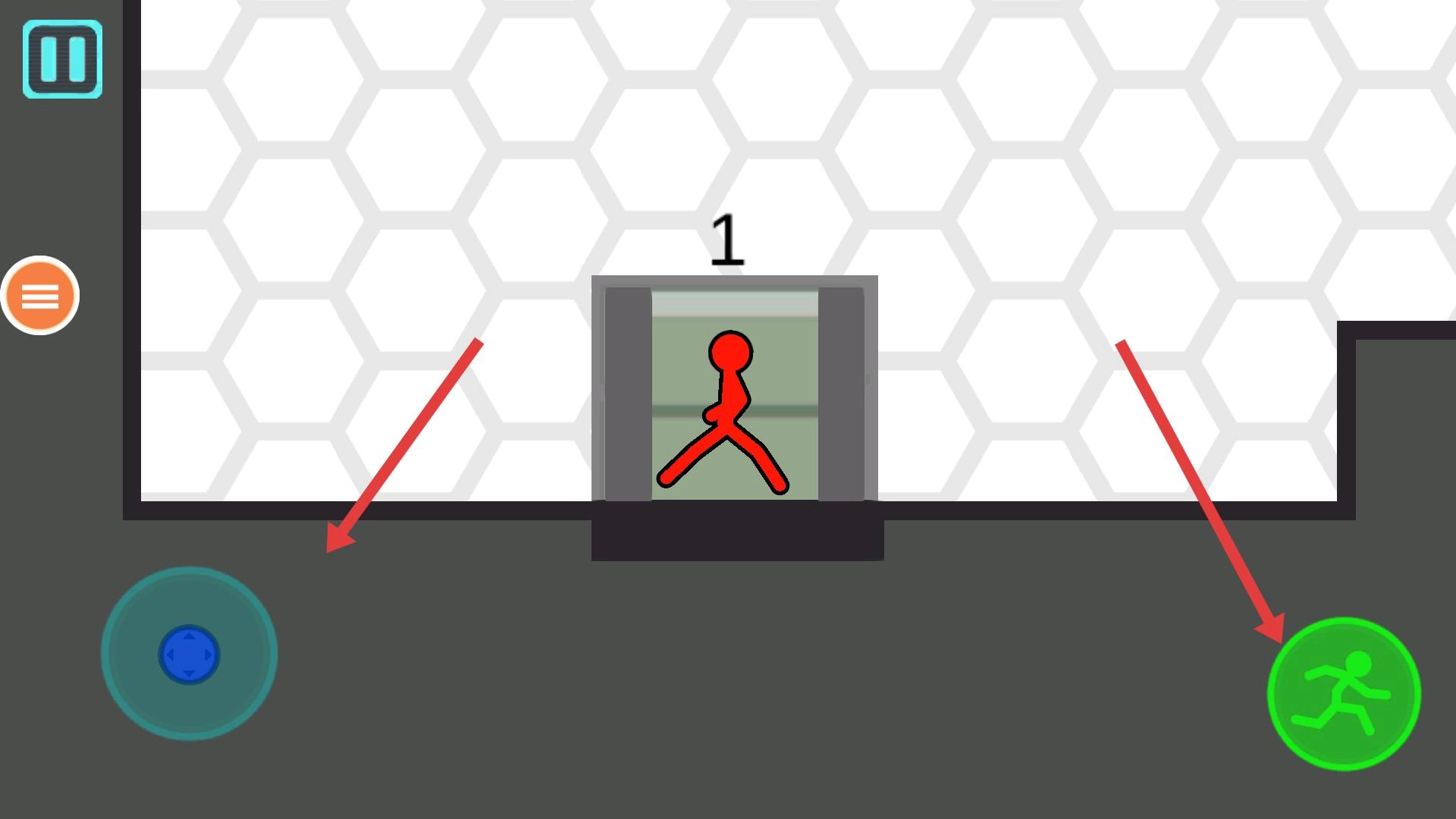 启动火柴人圣诞逃脱2这款游戏,进入第一关后,通过操作屏幕左侧的蓝色圆盘来调整火柴人的朝向,接着点击右侧的绿色奔跑按钮,使火柴人从起始位置开始移动。
