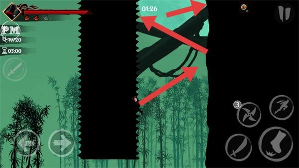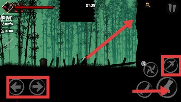 通过【←→】方向键控制角色移动,同时结合右侧的技能键来躲避障碍,需要在【03:00】的限定时间内完成关卡进度的推进。