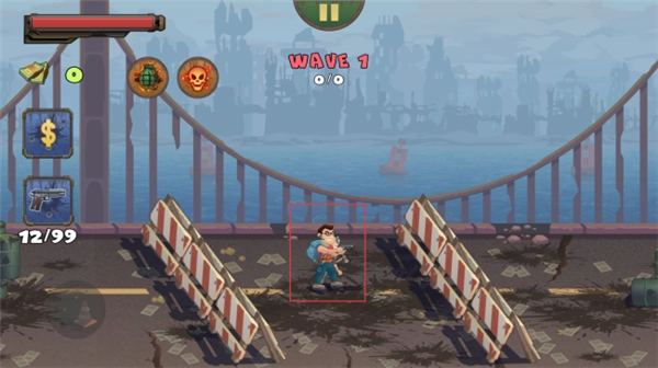 请留意上方出现的【WAVE-1】这类波数提示,由于每一波来袭的僵尸数量都不一样,所以要注意合理分配弹药,保持持续攻击的状态,这样才能顺利闯过每一波。