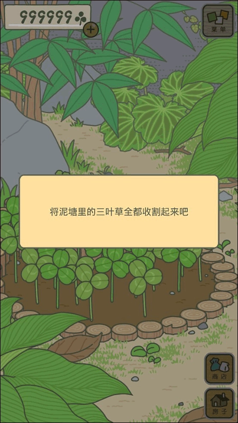 给蛙蛙取好名字后,听说它要出门,我们想给它买些吃的带上,这时候得先把外面的三叶草都收集起来才行。