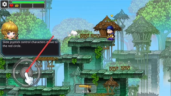 进入游戏后通过虚拟的方向盘来控制角色移动;