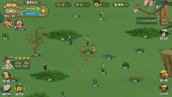 当玩家发现树枝、草药、石块这类可采集物品时,直接点选就能进行采集操作,点击后系统会呈现采集相关信息以及清晰易懂的操作步骤。