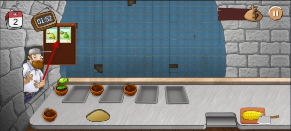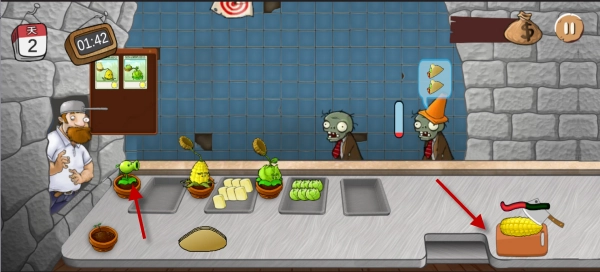 接下来点击右侧的食材以及豌豆射手,提供其他的两种食材。