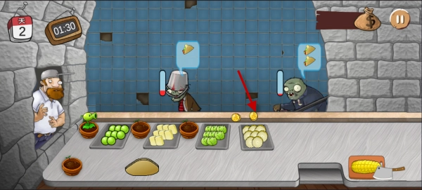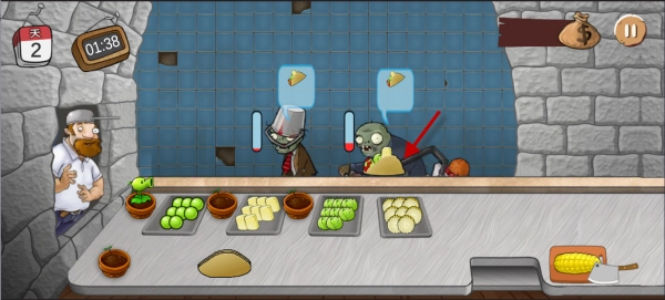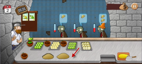 摆放妥当后,点击饼就会自动完成包裹,接着递送给对应的僵尸就可以了。