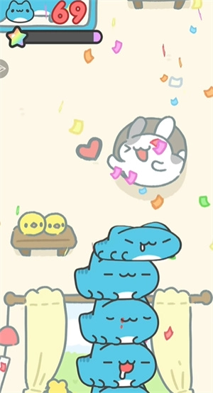 玩家得让萌萌的咖波赶紧叠起来,可别让它们掉下去啦。