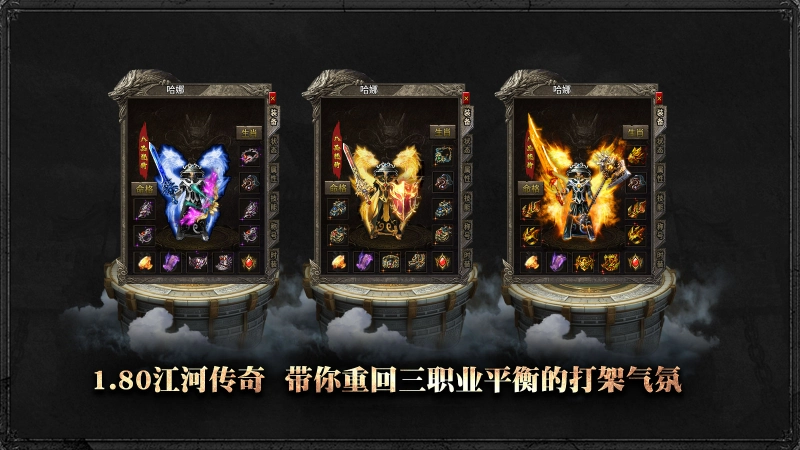 江河传奇,180三职业的经典火龙版本,战法道各有特色的专属玩法将为你带来全新体验!更有特色无尽海域玩法,七大岛主镇守,玩家间激烈争夺岛屿,全天开放超高爆率!本服物价保值,装备等级永久回收,只要有时间就能成为大佬!