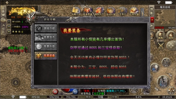本服务器里的所有小怪都有概率掉落首饰,剑甲类装备则能通过挑战BOSS和三宝怪来获取!