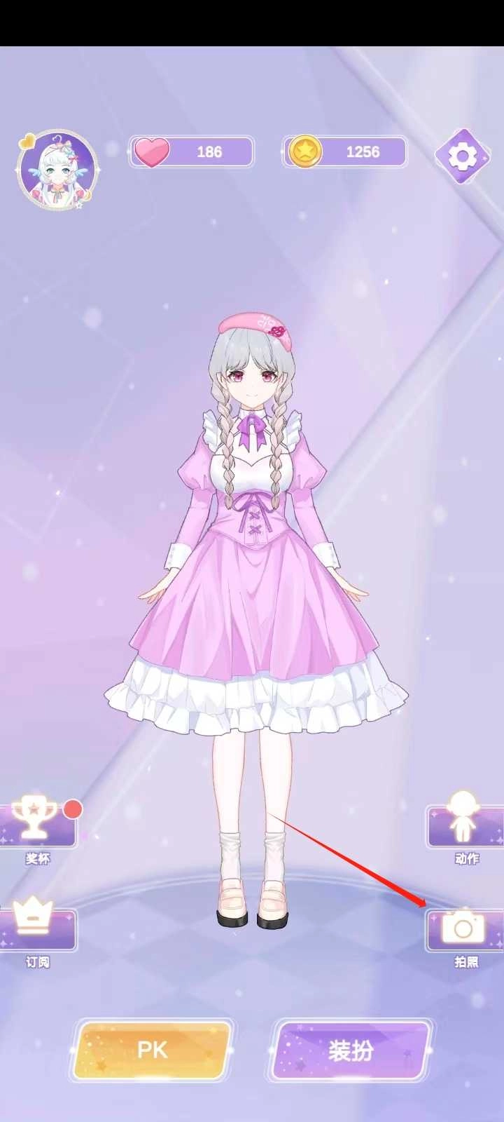 之后就会回到最初的那个页面,我刚才装扮的任务也已经保存好了,点击旁边的【拍照】按钮就行。