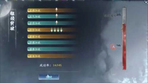 使用领取的道具后,属性面板会出现一个瓶子,后续通过打怪或打坐能为瓶子填充修为;等修为填满,即可着手突破。此外,点击瓶子会弹出一个面板,上面显示对应属性的加成效果,还会自动计算出当前突破的成功率。