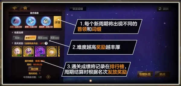 值得一提的是,噩梦斗场会记录每位挑战者的成绩,并据此制作排行榜,以此激励那些敢于挑战的勇士。该斗场以七天为一个周期,定期为排行榜上的挑战者结算奖励,而排名靠前的挑战者除了能获得应有的奖励外,还会得到特殊称号。