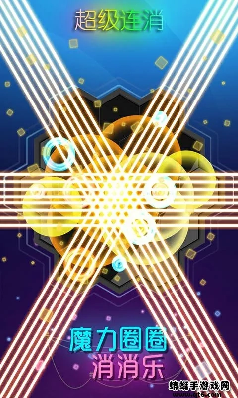 《魔力圈圈消消乐》是一款休闲闯关类消除游戏,采用了新颖的霓虹灯风格画面。游戏玩法简单易懂,玩家只需滑动放置圈圈,让相同颜色的圈圈达成三连即可消除。游戏内包含多种模式的关卡、丰富多样的道具,以及海量成就任务可供挑战,再搭配上魔性的配音效果,整体体验解压又有趣。