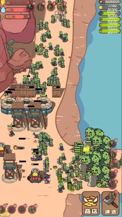 夜幕降临后,尸潮将一波接一波地袭来,玩家得合理规划防线布局,安排居民驻守岗位,打造出坚不可摧的防御体系。