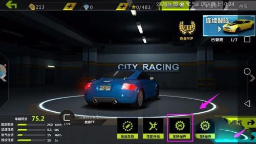 在开启城市飞车的生涯模式前,别忘了先给车辆做性能升级,只有把性能提升上去,我们在生涯模式里才能拿到好成绩。