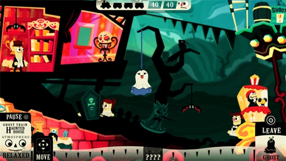 在游戏里,你能按住小幽灵,操控它在场景中到处飞行。
