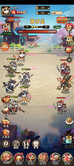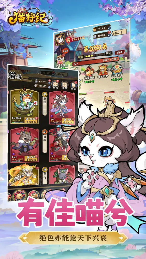 组建并培育专属的猫武将军团,增强他们的技能,精进他们的战术。