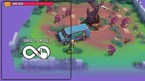 1、首先,欢迎来到本站带来的《盒子僵尸必须死》!进入首页后,先开始教程环节,玩家可以通过在左侧滑动屏幕来控制角色移动。
