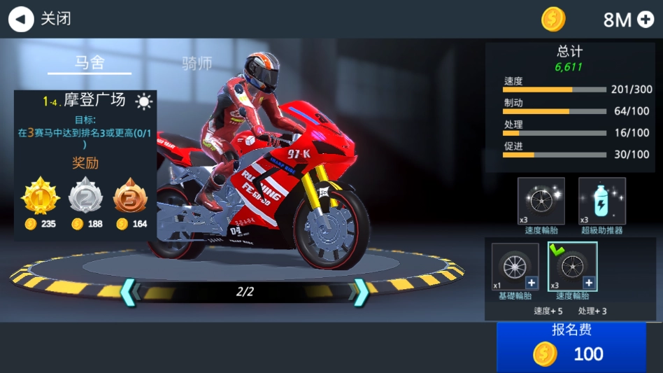 1.你能够借助改装摩托车的引擎、轮胎以及悬挂系统来增强其性能,打造出专属于自己的赛车,从而在比赛里占据有利地位。