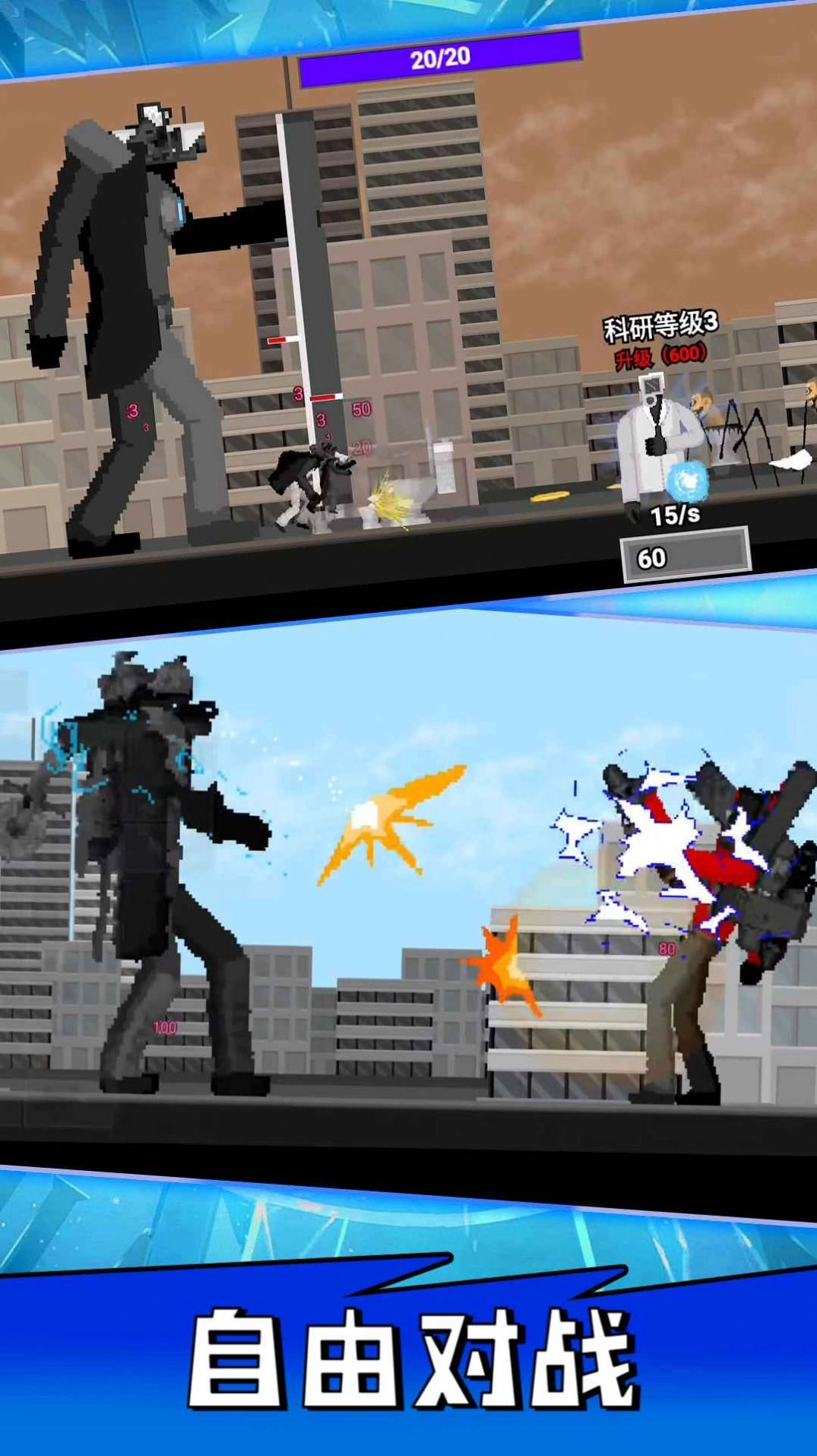 《泰坦时钟人大战音响人》是一款动作格斗类游戏,玩家能够在泰坦时钟人与音响人这两个角色中任选其一,操控所选角色与另一方展开激烈对决。在游戏过程中,玩家需要熟悉并掌握每个角色的独特技能,运用多样的招式参与战斗,同时还得将角色的身体动作与武器道具巧妙结合,以此达成对敌人的有效打击。