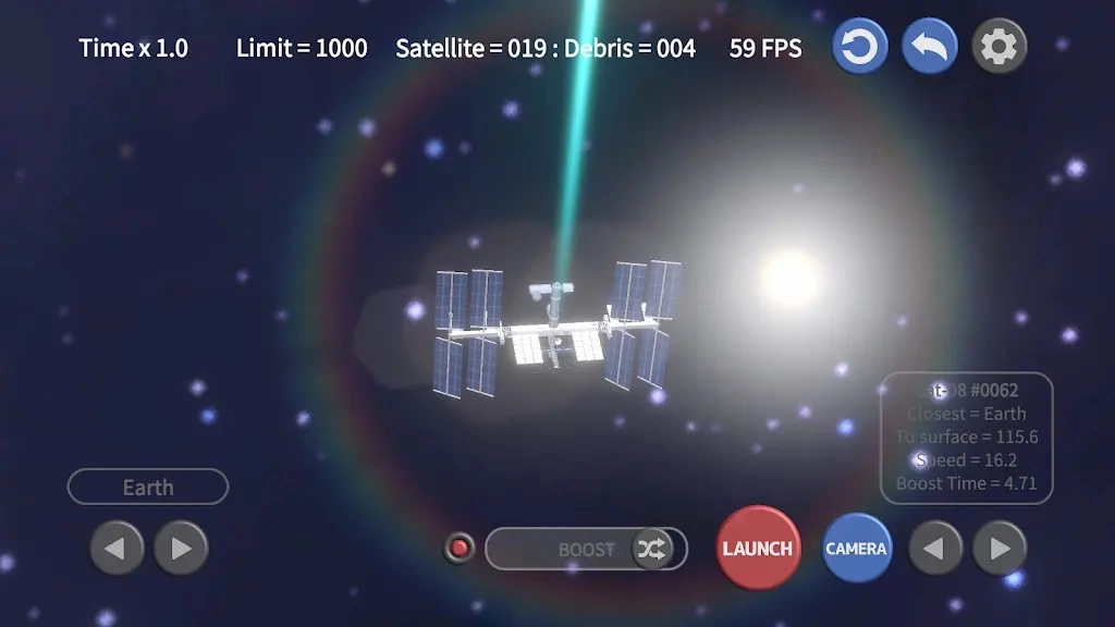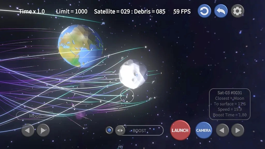 4、支持行星视角与卫星视角的自由切换,让玩家既能纵览宏观星系,又能清晰观察近地轨道,助力精准预判碎片的运动路径。