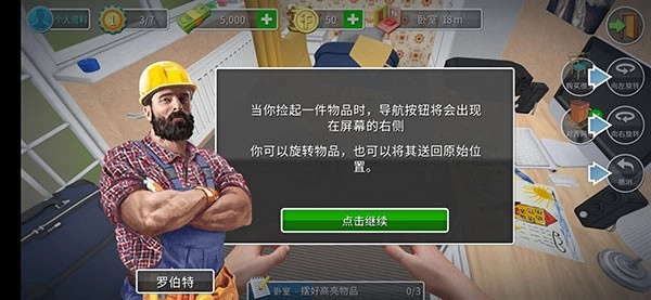 8、当你拿起一件物品时,导航按钮会显示在屏幕右侧,你既可以旋转该物品,也能把它放回原来的位置。