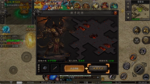 2、进入【新手怪物】地图,5分钟限时挑战,推荐优先击杀掉落基础装备的怪物。