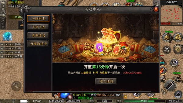 6、参与天降横财活动,该活动在开区第15分钟开启,活动地图内会掉落大量货币与材料,掉落物品需等待30秒后才可拾取,建议提前设置闹钟准时参与。
