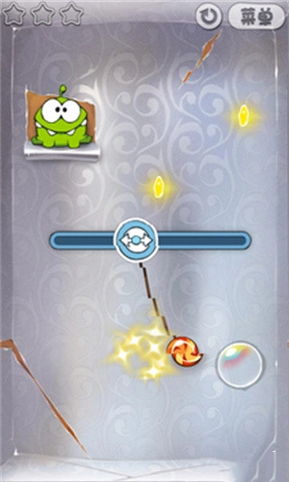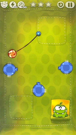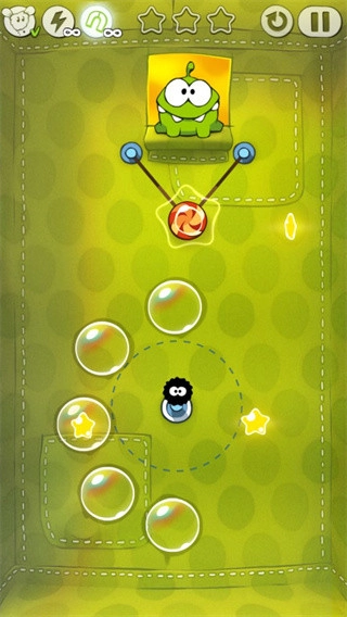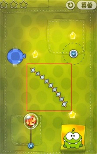 6、有时候需要迅速移动来使糖果摇摆幅度变大,用来获得一些星星还能把绳子拉紧。