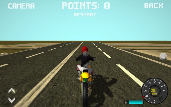 每一次的进行都能够让你获得金币,金币还能够帮助你改造自己车辆,提升性能。游戏里面玩家可以以第一人称的角度来驾驶摩托车,进行各种各样任务完成后还能够自身更新改造摩托车,游戏界面十分逼真。