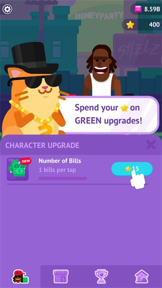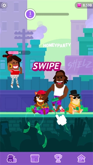 《派对大师》是一款充满趣味性的点击休闲游戏,玩家将在游戏中化身为一位人气明星。在派对场景里,你需要与前来挑战的舞者一较高下。随着游戏进程的推进,后续出现的舞者实力会愈发强劲,击败他们的难度也会不断提升。此时,为角色进行升级就显得尤为关键——通过升级,你能更轻松地战胜对手。此外,游戏中还藏着不少有趣的玩法等待解锁,快来开启你的探索之旅吧!