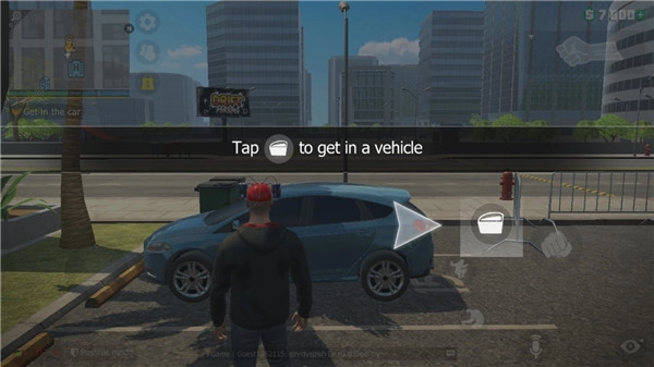 5、根据提示走出出生点大厅,来到汽车旁,点击开门即可上车。注意,走出出生点后即离开安全区域
