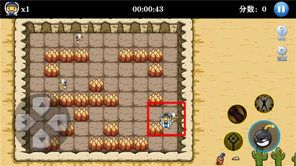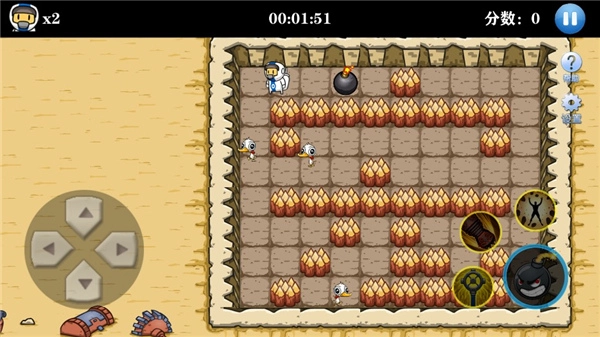 左侧是控制角色移动的摇杆,右侧是炸弹按键;