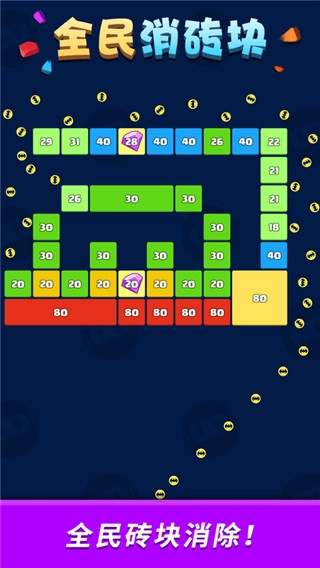 消除,竟能这般轻松。在天天消砖块正版里,你只需指尖轻触、滑动屏幕,就能让小球如狂风暴雨般撞击砖块。灵活运用砖块技能,优先击破关键砖块,加速消除节奏,让游戏充满策略趣味。多样的道具设计,为你带来源源不断的惊喜。别具一格的关卡设置,考验你的智慧,激发你的潜能。沉浸在消除的欢乐中,体验砖块碎裂的瞬间爽感,天天消砖块正版,让你的休闲时光变得丰富多彩。