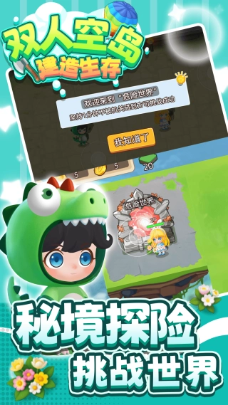 双人空岛建造生存版是一款合作求生类游戏,玩家初始只有一座空岛,要靠砍伐树木来获取资源,持续拓展岛屿的领地范围、搭建各种设施,还要抵御海盗的袭击,最终目的是发现新大陆,感受双人协作生存过程中的乐趣与挑战。