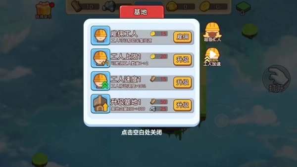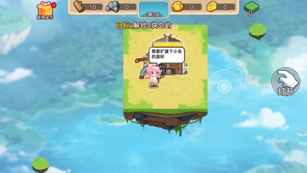 第一天的目标,解锁4块岛屿,扩建下小岛的面积。