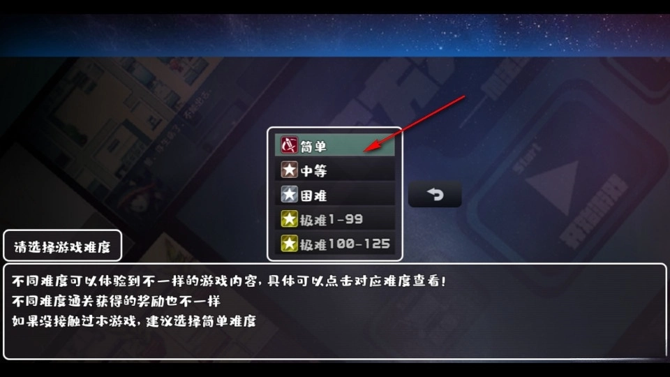选好角色后,在进入游戏之前,可以选择简单、中等、困难这三个模式。