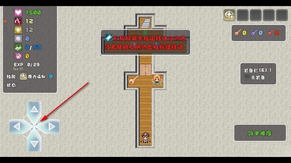 点击左侧方向键进行移动,靠近NPC可触发剧情对话
