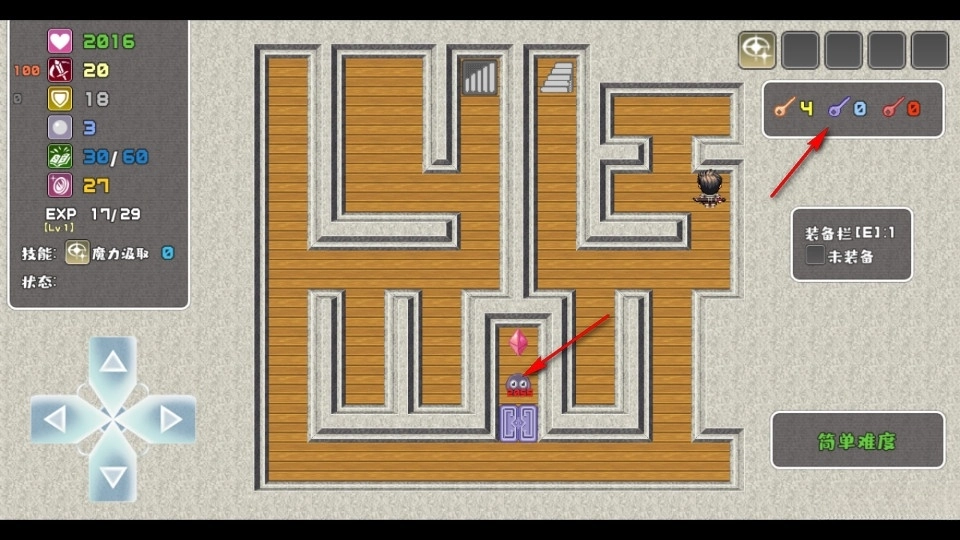 怪物身上的数字意味着要消耗生命值,场景里有红、蓝、黄三扇门,得找到对应的钥匙才能打开。